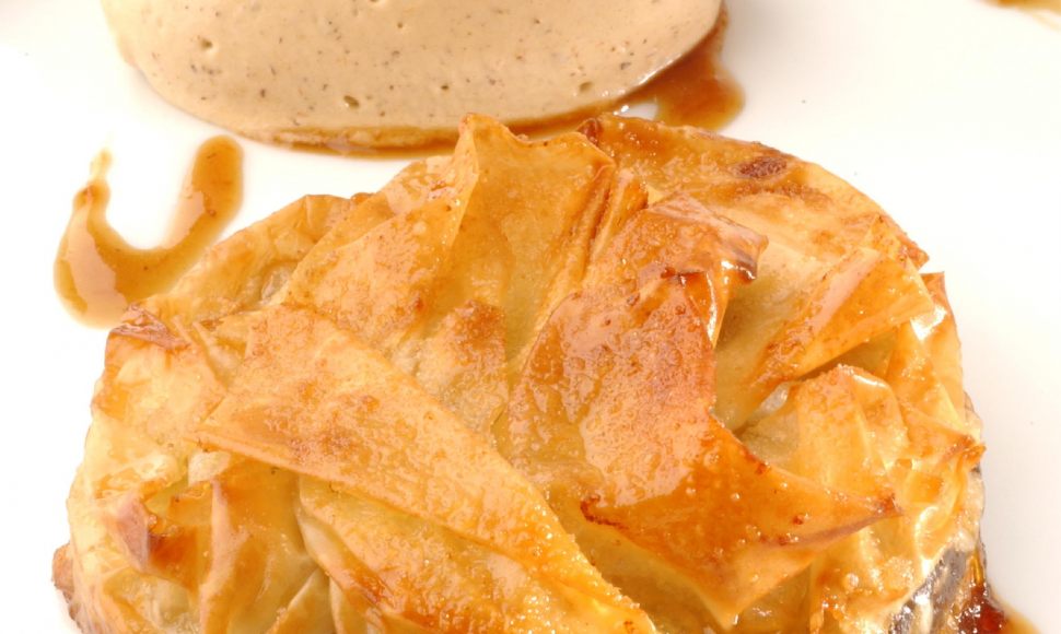 J’ai obtenu cette recette grâce à l’amitié d’Alain Ducasse. Je l’ai apprise de la mère de Michel Sarran, véritable orfèvre de la tourtière landaise. Par une belle journée, au Juana, elle m’a enseigné toutes les subtilités de cette recette. En France, avant que l’on n’inventât au XVIIe siècle la pâte feuilletée au moyen du tourage, les pâtisseries feuilletées étaient confectionnées de cette façon. Elles le sont encore en Grèce et dans la Méditerranée orientale.