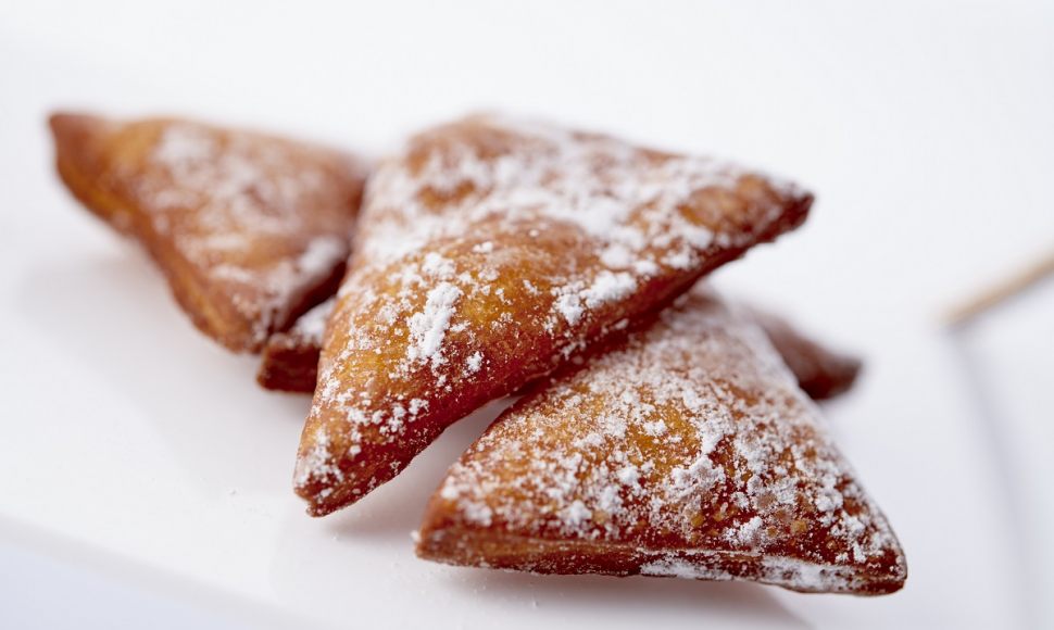 Disposez les triangles sur un papier absorbant et roulez-les dans du sucre glace.