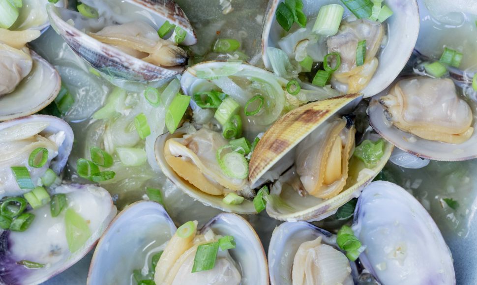 Servez les palourdes avec la cébette émincée et, éventuellement, du jus de citron vert.