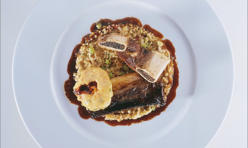Travers de bœuf de coutancie cuit à la rôtissoire, boulgour comme un pilaf, réduction d’une choron