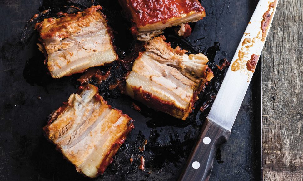 La cuisson lente de ces travers de porc fermier rend la viande plus que tendre.