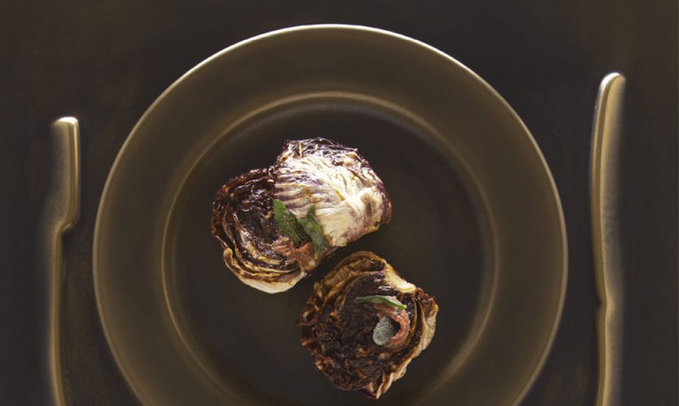 Nous aimons en hiver la délicate amertume de cette salade mêlée aux parfums et au goût de la grillade. Cette trevisana ainsi préparée est idéale pour accompagner une côte de veau ou de porc fermier, simplement cuisinée au jus.