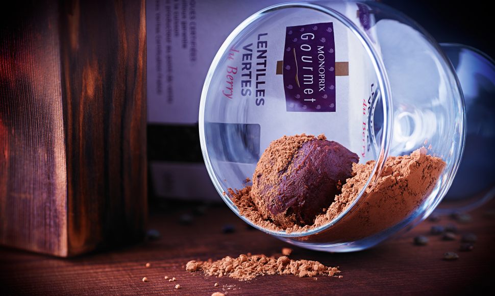 Peser 200 g de purée de lentilles et conservez le reste au frais. Faire fondre le chocolat noir et le beurre au bain-marie. Verser le chocolat liquide sur la crème de lentilles. Bien mélanger, filmer et laisser reposer 3 heures au frais