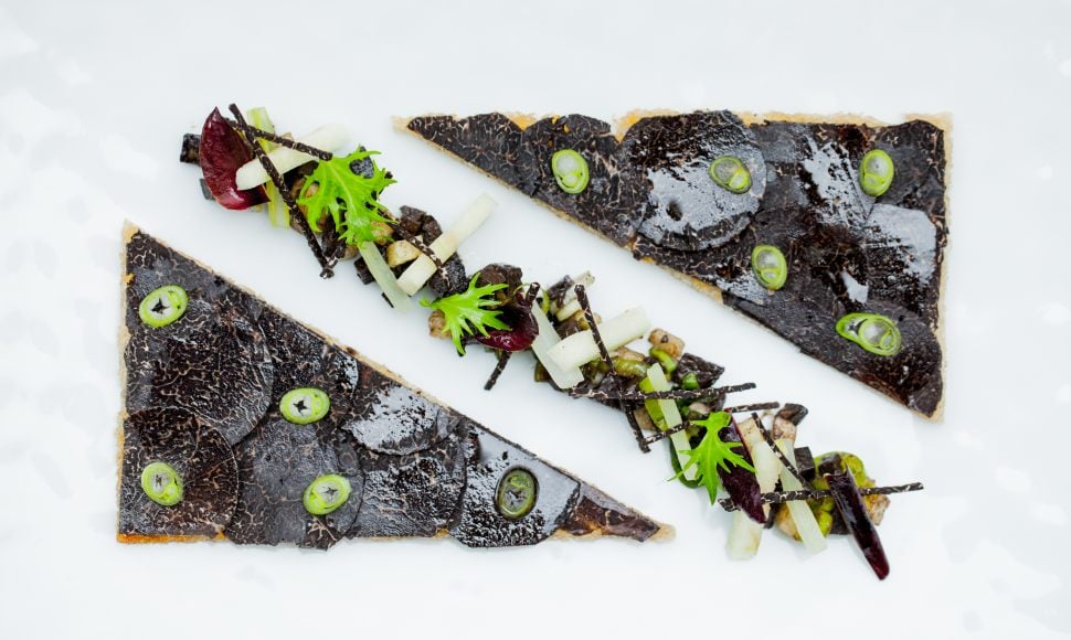 Truffes noires melanosporum à la croque, salade et herbes d'Annie Bertin
