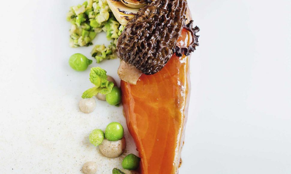 Fumez le poisson : badigeonnez généreusement les morceaux de truite de glaçage aux champignons. Placez la plaque avec le poisson dans un fumoir à 76°C et faites-le fumer pendant 8 min. Sortez-le du fumoir, repassez une couche de glaçage et fumez-le de nouveau pendant 8 min. Il doit être friable et garder sa couleur rouge. Badigeonnez une dernière fois de glaçage et réservez à température ambiante.