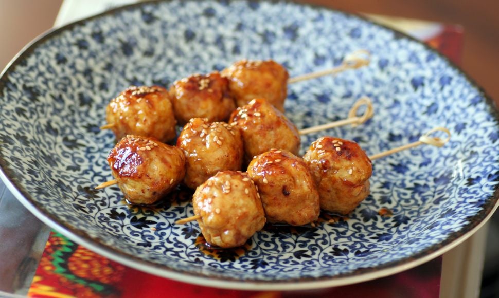 Enfilez les tsukune sur des pics à brochettes et servez bien chaud.