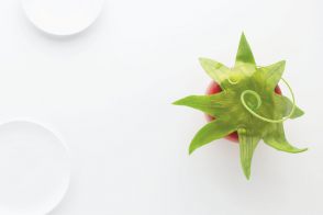 Oter la tête et la queue du turbot, puis lever la peau des deux côtés. Couper le poisson en tronçons réguliers de 230 g pièce et réduire de chaque côté des tronçons la première articulation de la colonne vertébrale à l’aide d’une paire de ciseaux.
