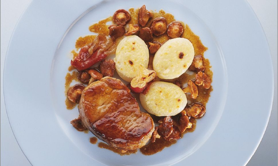 Veau de lait en grenadin, girolles, pommes fondantes comme un dauphinois
