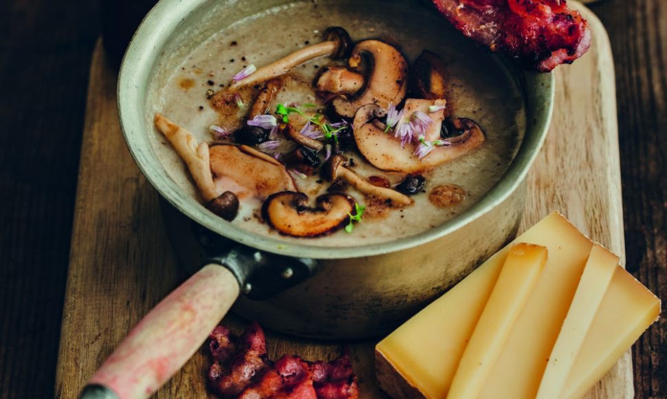 Elle tombe à pic cette recette de velouté de champignons, lard et comté : des produits de saison pour réchauffer corps et cœurs, ça ne se refuse pas. Cette recette est partagée par la Coopérative Sherpa.