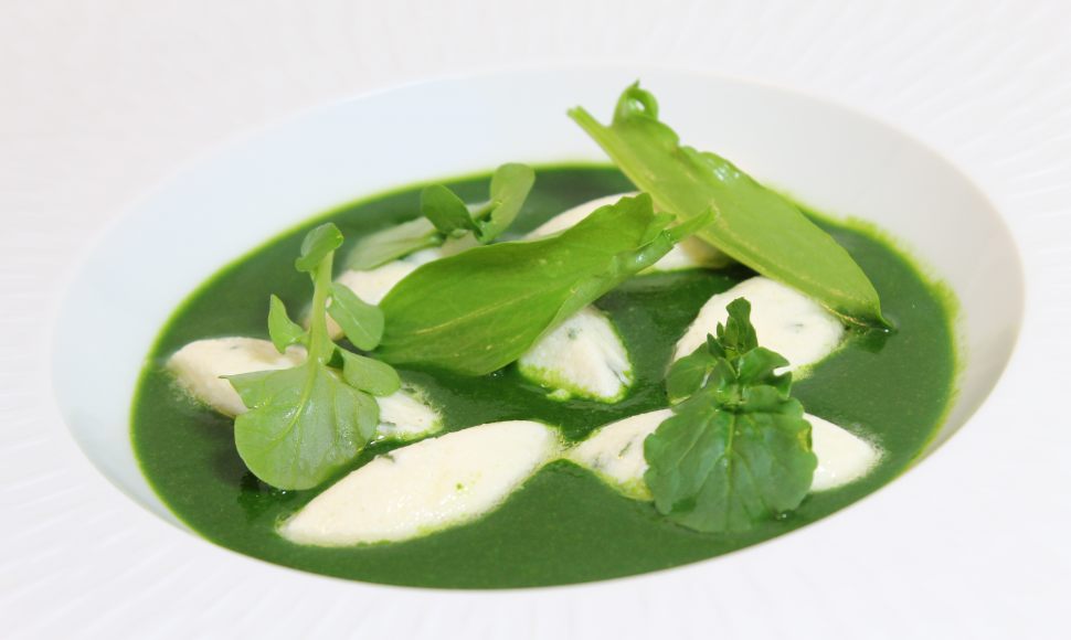 Pour un repas léger et plein de vitamines réalisez ce délicieux velouté de cresson à l'oseille. Choisissez une botte de cresson verte foncée pour conserver une belle couleur à la préparation qui contrastera parfaitement avec vos gnocchis.