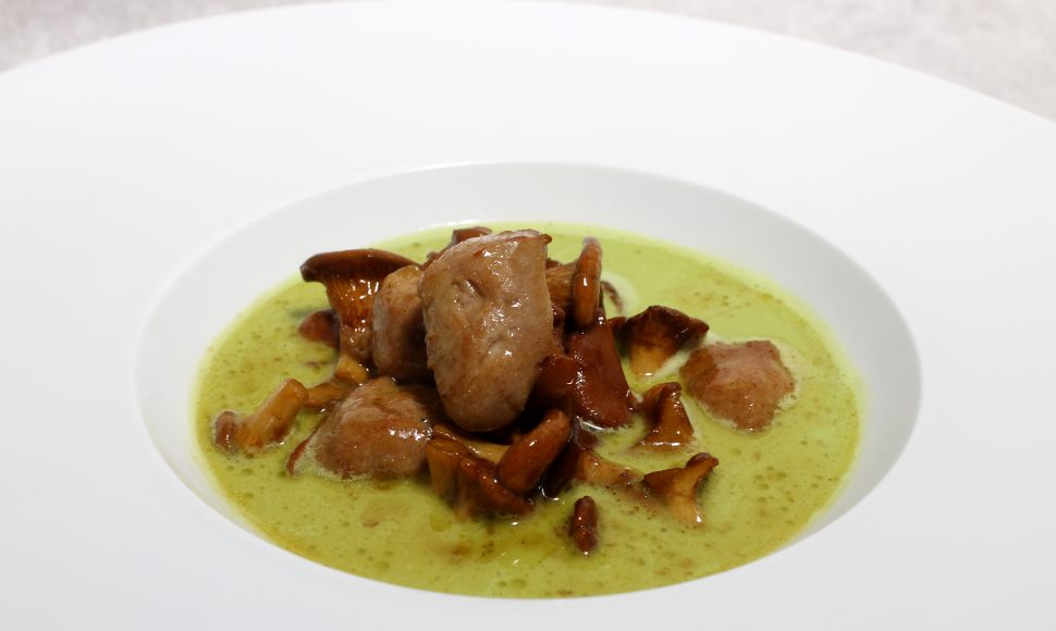 Velouté de salades aux girolles, sot-l’y-laisse de volaille