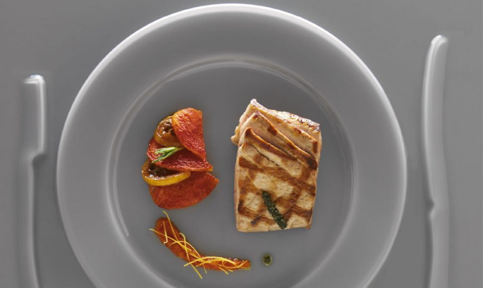 Ventre de thon grillé à la sicilienne, tomates semi-confites