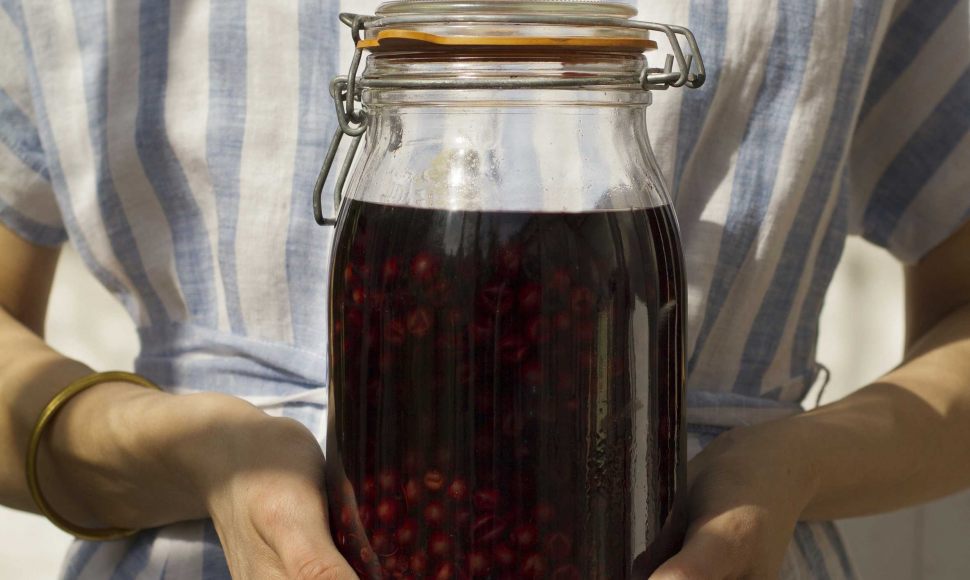 Mettez les baies de cassis ainsi que les branches et les feuilles dans un bocal, puis versez le vinaigre à ébullition par-dessus.