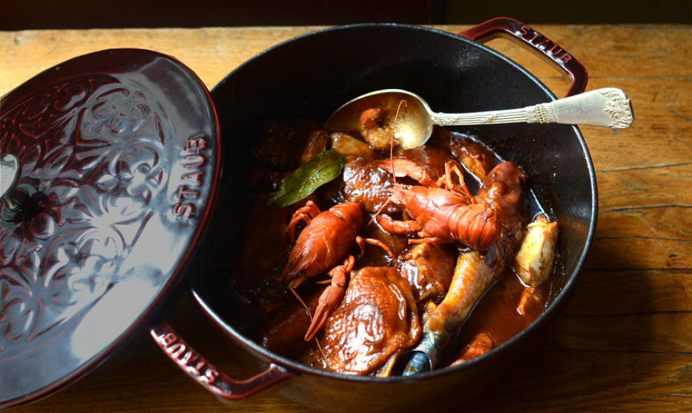 Le poulet aux écrevisses est un incontournable des bouchons lyonnais. Le secret ? La cuisson. C'est pour cette raison que la cheffe Marie-Victorine Manoa a choisi Staub et sa sauteuse Chistera en fonte de 24 cm pour la réaliser comme il se doit.