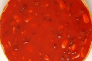 Décortiquer les amandes fraîches en veillant à ne pas abîmer les graines. Les dérober,. En réserver 10 entières pour le dressage. Couper le reste en deux et les mettre dans un saladier. Recouvrir de lait et laisser tremper 30 minutes.