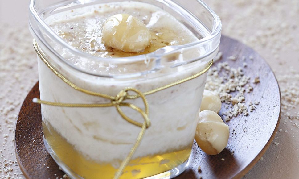Des yaourts à la noisette, cachant un lit sucré de miel et noix de macadamia.