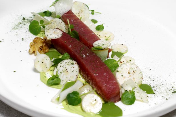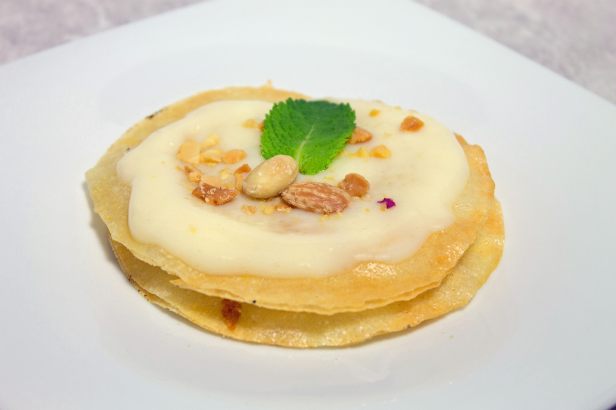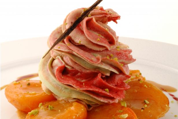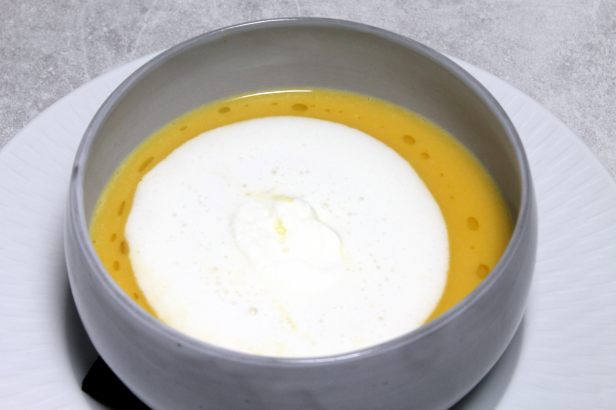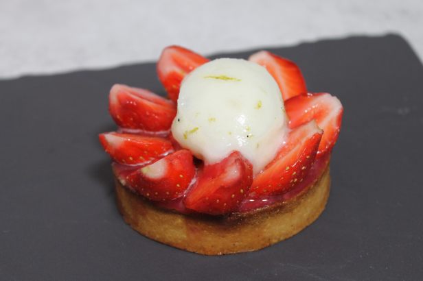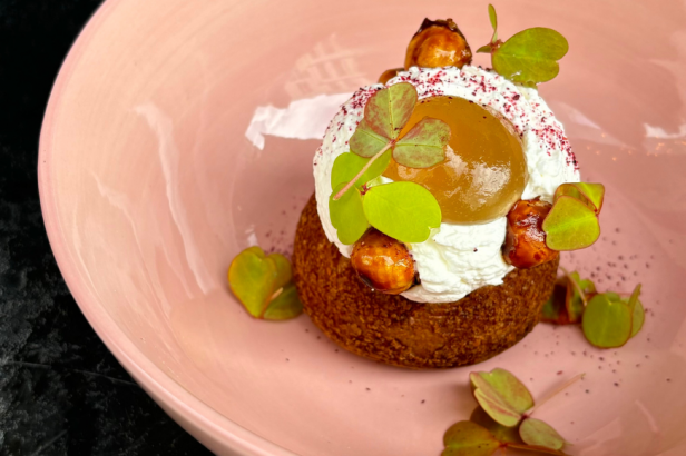 Un dessert à retrouver à la carte de Sadarnac, le restaurant de la cheffe Lise Deveix, et qui associe les notes boisées de la noisettes à celles, florales, du sureau.